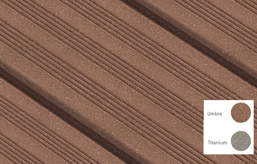 Prkno Trend25 je v našem sortimentu lehká váha. Jeho výsadním atributem jsou vybrání materiálu, která se využívají ke snížení hmotnosti. Přitom však prkno Trend25 není méně silné! Povrch prkna je částečně rýhovaný a dodává se v teplých přírodních odstínech Umbra a Titan. Vytvořte si ve svém venkovním prostoru příjemné prostředí.